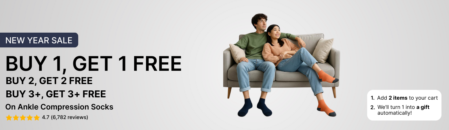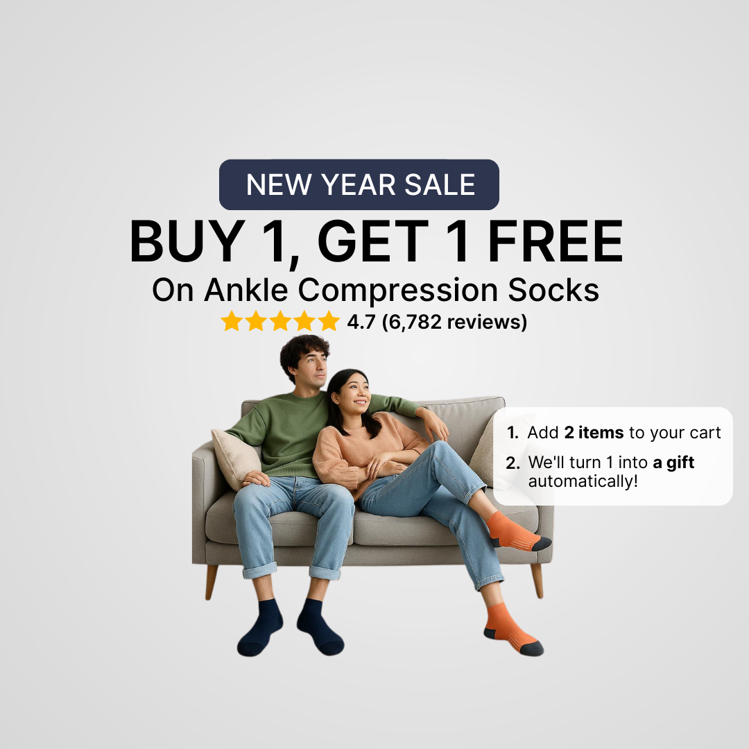 Shorter length, same support. Our ankle compression socks offer gentle 12–15 mmHg pressure to keep your feet feeling fresh, energized, and supported all day long.