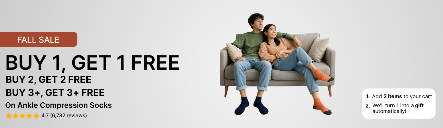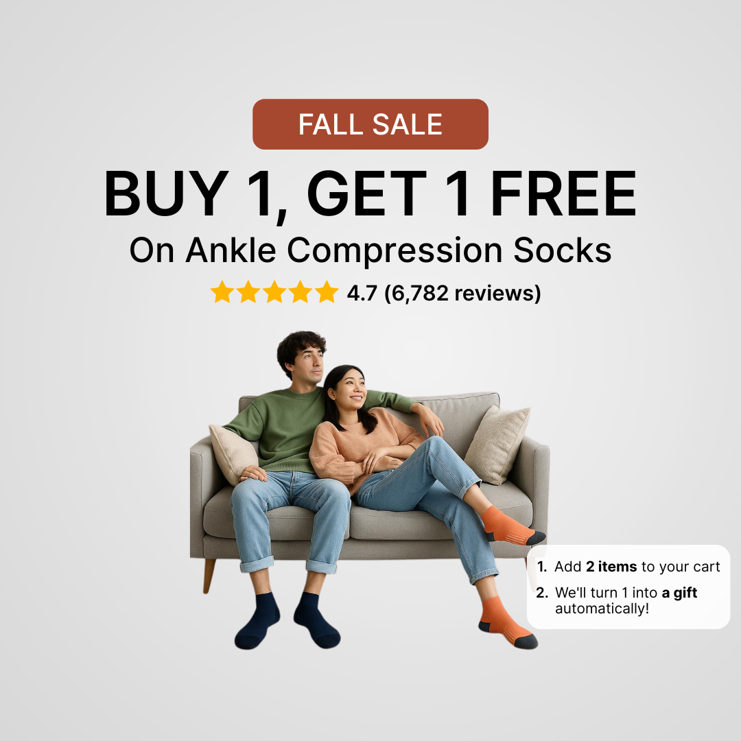 Shorter length, same support. Our ankle compression socks offer gentle 12–15 mmHg pressure to keep your feet feeling fresh, energized, and supported all day long.