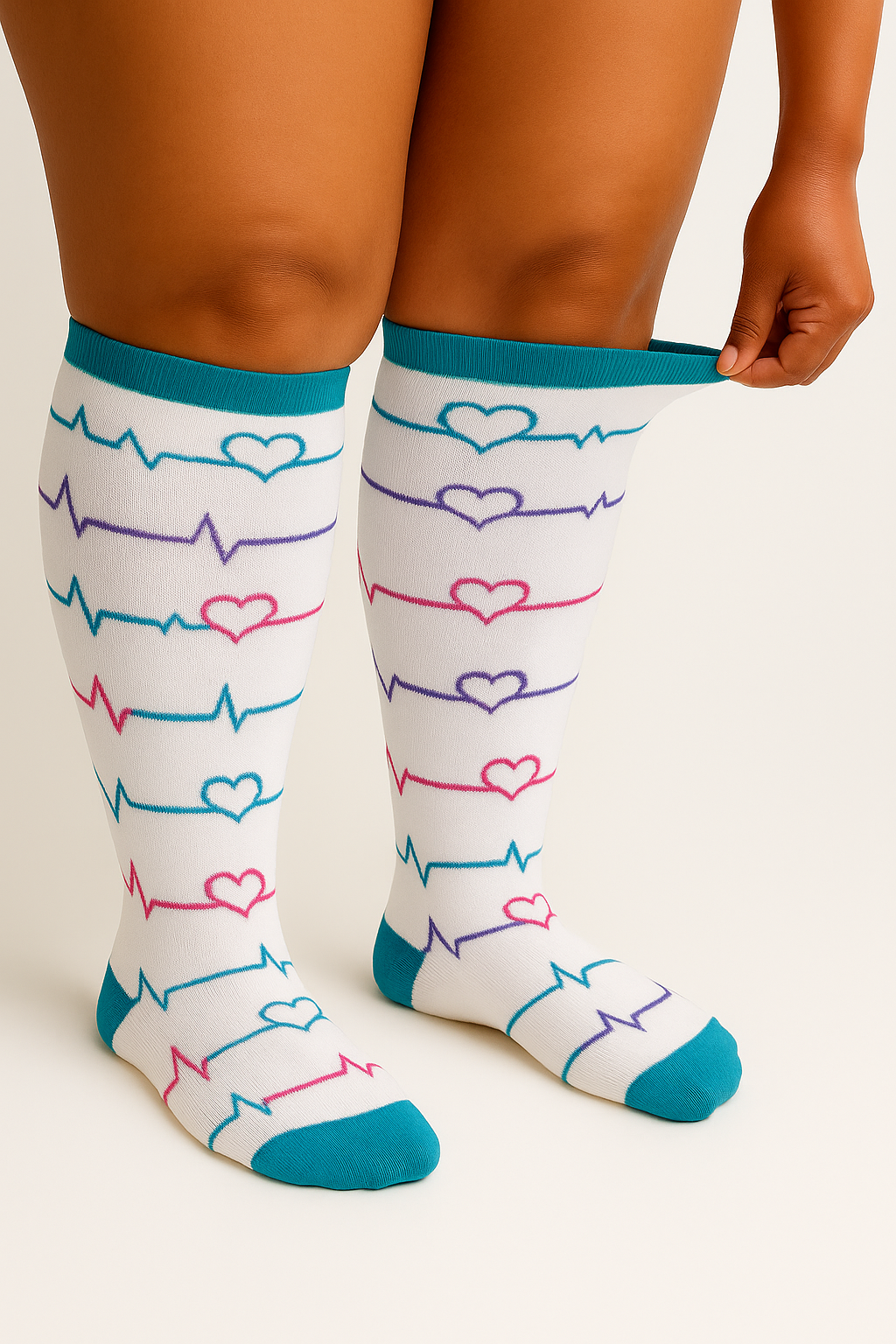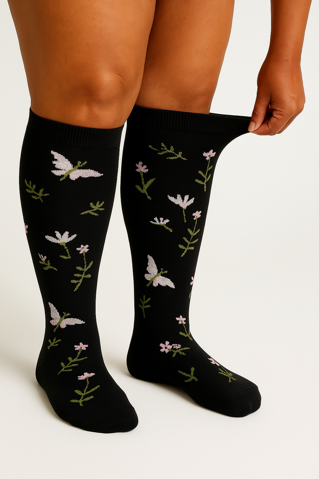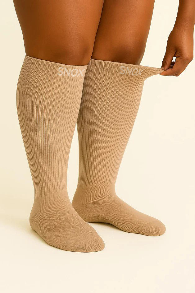 Socks that finally fit — wide, gentle, and designed to hug every leg without pressure, pinching, or painful marks, so you can move freely and enjoy all-day comfort, no matter your calf size.