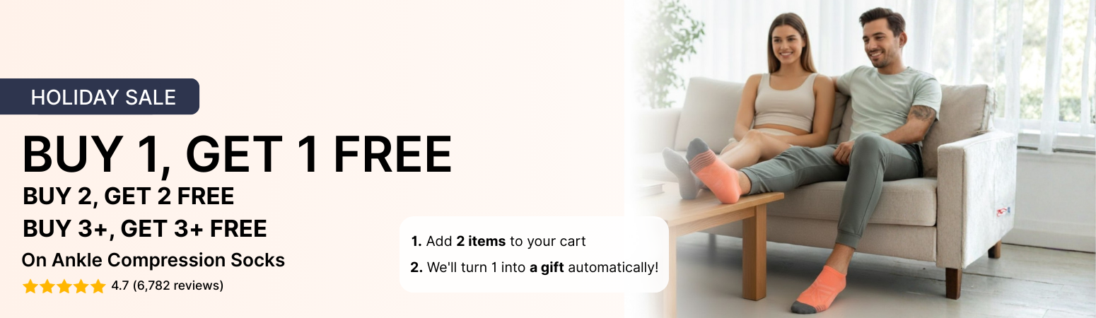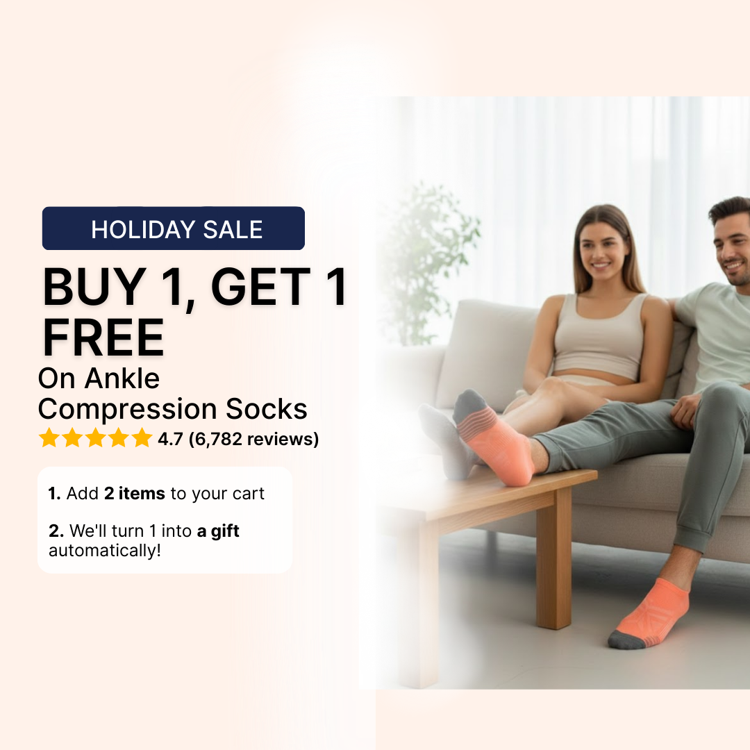 Shorter length, same support. Our ankle compression socks offer gentle 12–15 mmHg pressure to keep your feet feeling fresh, energized, and supported all day long.