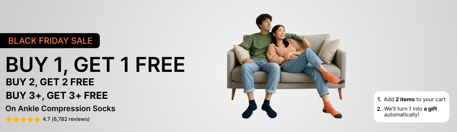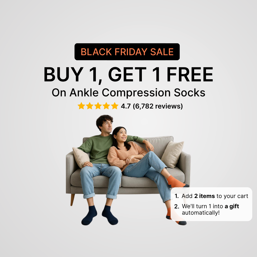 Shorter length, same support. Our ankle compression socks offer gentle 12–15 mmHg pressure to keep your feet feeling fresh, energized, and supported all day long.